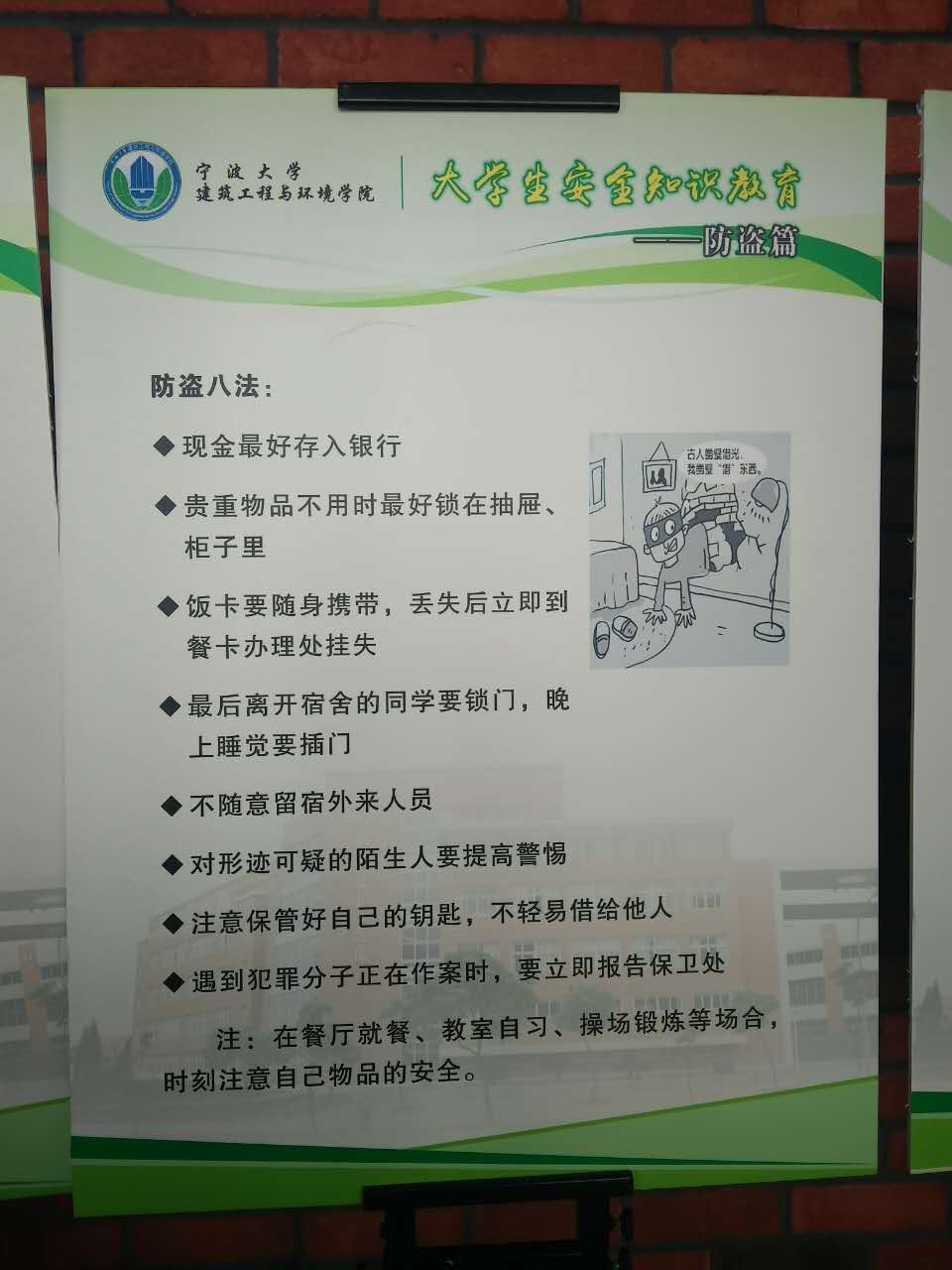 为进一步加强安全教育,使学生树立以安全为主的自我保护意识,建工学院于3月14日在南门公寓二号楼一楼大厅举行大学生安全知识教育宣传活动。