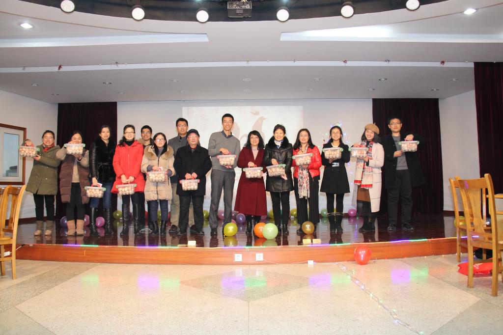 联欢会欢声笑语不端,热闹非凡,洋溢着浓郁的喜庆气氛。歌曲、钢琴独奏、莎士比亚戏剧选段、舞蹈、诗歌吟诵和创意十足的游戏环节等,丰富的节目形式和精彩的表演,赢得了观众的阵阵掌声和喝彩。三次抽奖环节:土鸡奖(三等奖)、木鸡奖(二等奖)、金鸡奖(一等奖)更是把喜乐的气氛推向了高潮。
