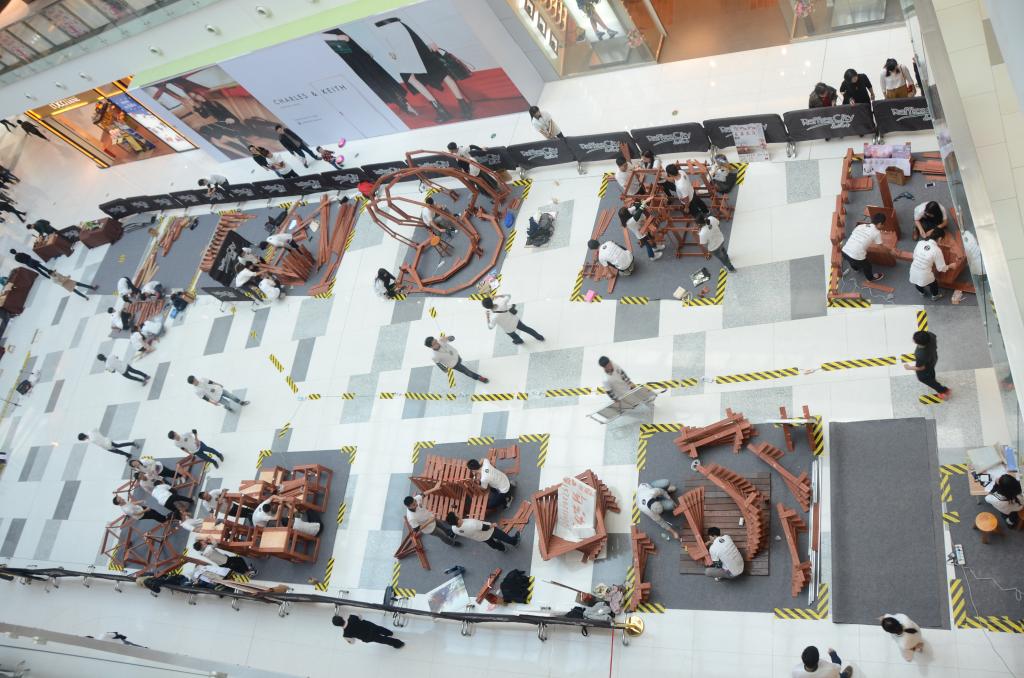 11月5日,首届宁波市高校联合搭建竞赛(决赛)------ 现场搭建赛在宁波江北区来福士广场中庭举行,本次竞赛由凯德集团江北来福士冠名,由宁波市土木建筑学会、sm调教