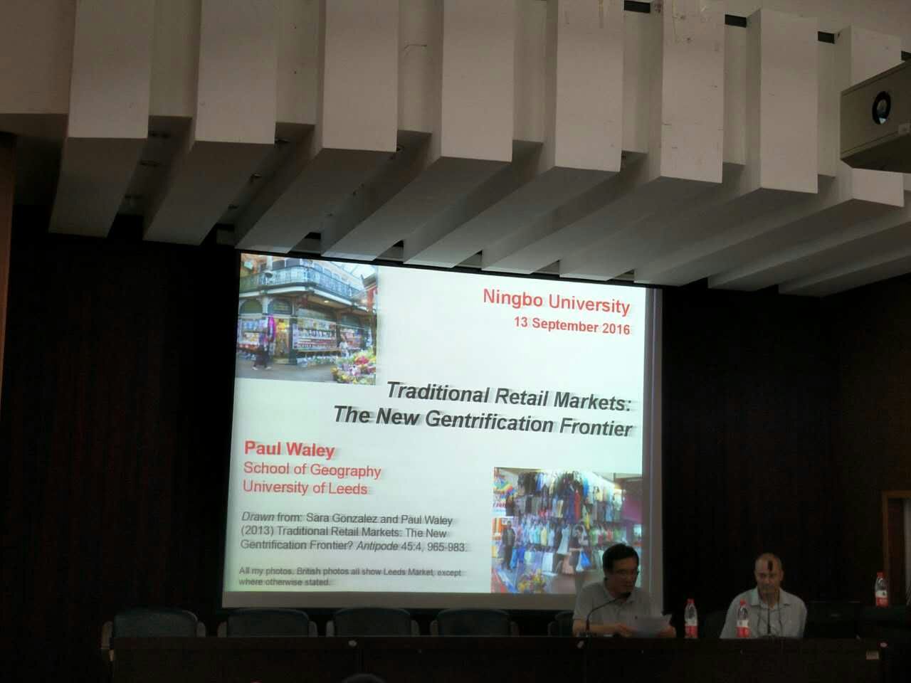 2016年9月13日下午3:30, Paul Waley教授的第二场学术报告准时在建工学院报告厅进行,会议由学院党委书记王益澄教授主持。本次报告主题为“转变的零售市场:绅士化的新前沿”。报告首先讲解了欧洲的早期零售市场的空间分布与特点,随后又指出随着绅士化的出现,城市中心区的一些传统零售市场逐渐消失,取而代之的是一座座高大华丽的商业楼宇或城市综合体,而这些楼宇的出现恰恰迎合了欧洲中产阶级的消费需求。因此,Paul从城市中心的市场这一微观现象对欧洲绅士化进行了又一次的深入探索,充分展示了其上下求索的学者精神。报告结束后,部分学生和老师对其研究内容进行提问交流。下午5:10,报告在一片掌声中圆满结束。