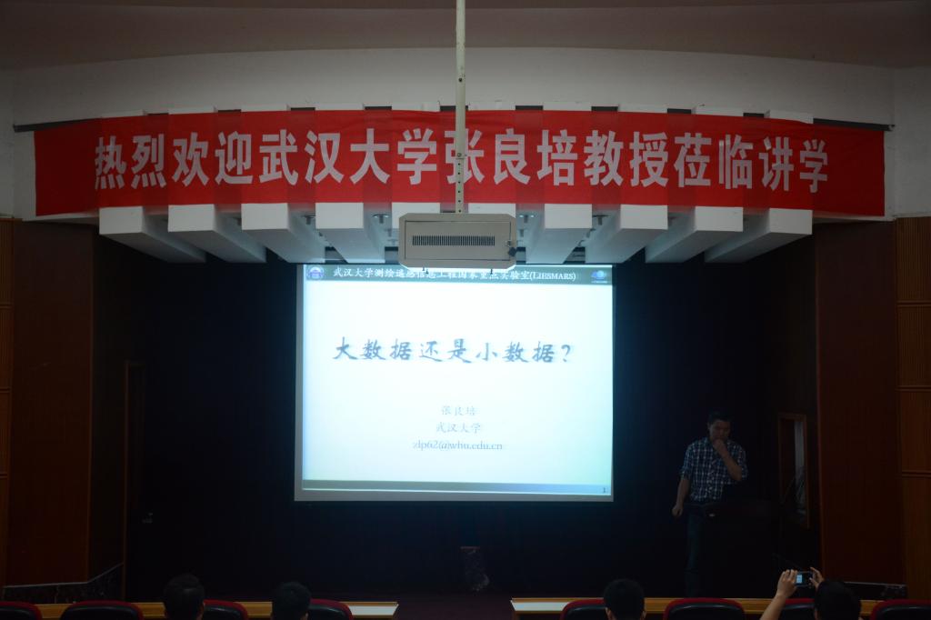 讲座中,张良培教授以“大数据还是小数据?”为题,对高分辨率遥感影像以及遥感影像在深度学习方面取得的最新进展的介绍,均体现了自动化遥感信息的提取,主要依赖于海量数据。但张良培教授另辟蹊径,从小样本出发,通过人类认知与学习的方式、遥感影像稀疏混合像元分解、流形学习等,提出了很少很小的数据也可以表示高维的数据。此外,张良培教授还重点讲述了如何利用现有的数据、模型与解译知识及如何利用迁移学习估算一个地区的贫穷情况等。
