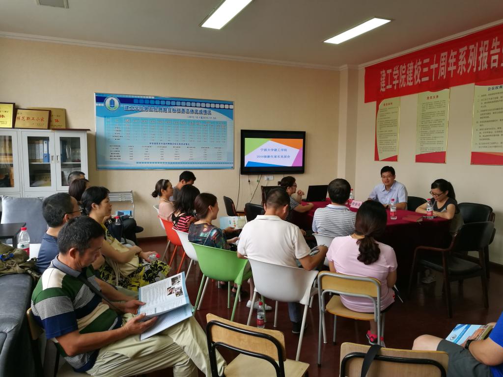 9月10日下午,建工学院2016级本科生新生家长见面会在学院303会议室举行。院党委副书记俞金波老师、学工办主任华颖老师、城科系辅导员吴燕丽老师、分团委书记沈妍伶老师与2016级新生家长进行了愉快的见面会。