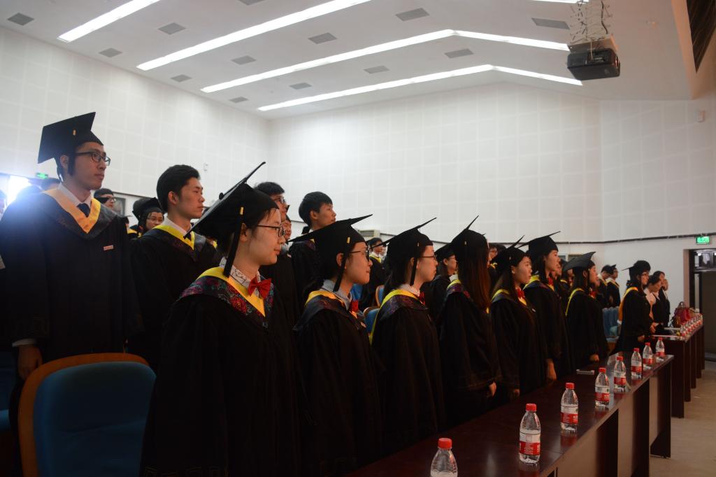语后,开始了激动人心的授予学位仪式,学院领导依次为毕业生拨穗。到这里,典礼渐近尾声,主持人王益澄老师恭喜全体顺利毕业的学生,并以美好的祝愿为他们送行。典礼在激昂的校歌中徐徐落下帷幕。