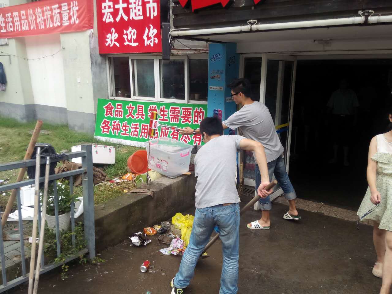 活动开始,学生党支部副书记何锡存对此次活动的开展进行大致安排,随后,带领同学们一道手持塑料袋、扫帚进行了环境清理志愿服务。整个活动中,大学生党员发扬“不怕脏、不怕累“的精神,手里拎着塑料袋,时走时停,或蹲或站,对车库中的积水、垃圾进行彻底清理。虽然脸上流着汗水,但是看到自己打扫的成果也乐在其中。经过同学们一个多小时的相互配合,不但周围环境有了极大改善,而且同学们的表现也得到了宏大商店及同学们的一致称赞。整个活动在充满朝气与活力的氛围中圆满结束。