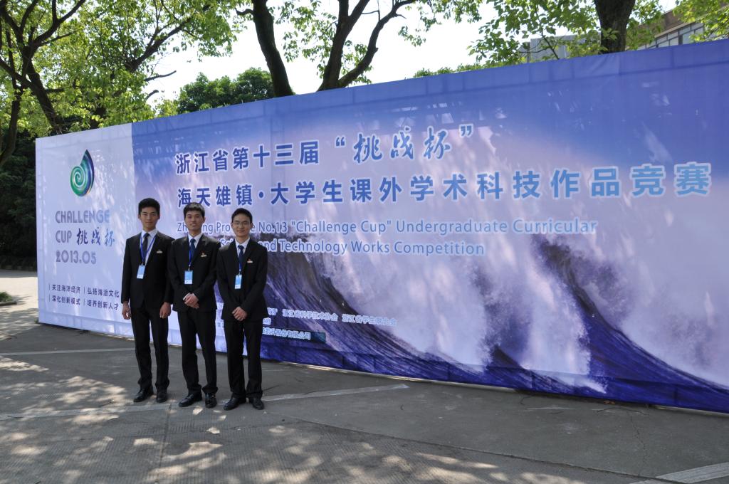 5月26日,历时3天的浙江省第十三届“挑战杯”海天雄镇大学生课外学术科技作品竞赛在sm调教 顺利闭幕,由sm调教 朱剑锋、刘干斌、邓岳保老师指导,胡成宝、艾述刚、刘珍昆、戚萧晨、汪思聪、林亨、陈佳敏、饶晟同学的作品“一种新型的边坡支挡结构”荣获一等奖。