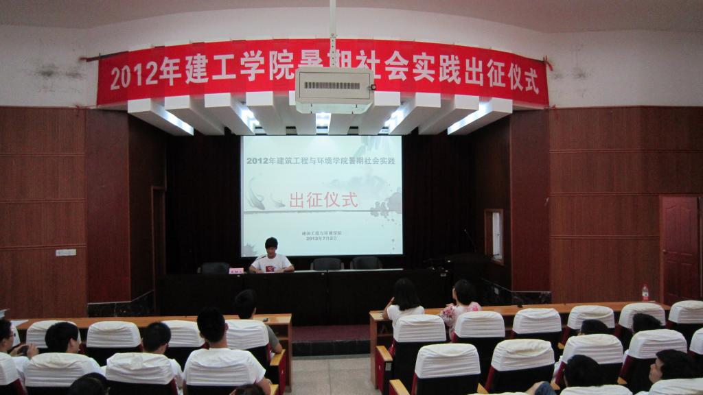 2012年暑期社会实践出征仪式在报告厅举行。院党委副书记张佩芬,院分团委书记高婷,学工办辅导员俞一统以及各暑期社会实践小分队代表参加了仪式。