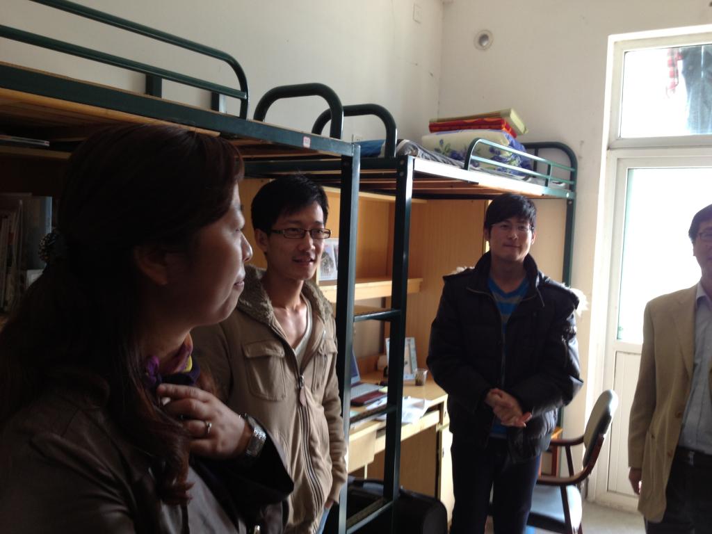 学生的画作表现了浓厚的兴趣,称赞这些作品很有专业特色,美化了寝室环境,也丰富了寝室文化。