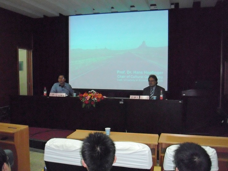 Prof.Hans Hopfinger教授长期从事文化地理和旅游地理的研究工作。讲座中,Prof.Hans Hopfinger教授以世界旅游之冠——宜家为例,通过丰富的数据和图表向大家介绍了德国的旅游发展状况,并展示了他和他的学生们从微观地理角度出发对宜家的消费者进行的空间行为调查成果。报告后的提问环节Prof.Hans Hopfinger教授就同学们的问题做了详细的解答。本次论坛开拓了学生的地理思维,拓展了研究的方法,在场同学受益匪浅。