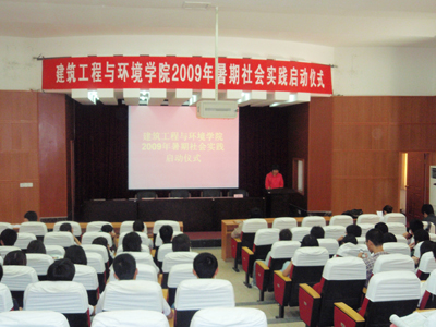 仪式上,院分团委副书记韩晓同学作了08年暑期社会实践工作总结,院青年志愿者协会会长董琳琳同学介绍了08年院暑期社会实践过程中青志活动开展情况,土木071于海根和地理08袁麒翔同学分别代表老、新生发言,院分团委书记黄伟作总结发言,他对09年暑期社会实践相关工作作了具体安排。