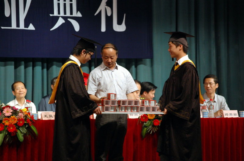典礼上还公布了获得2009届省级、校级优秀毕业生荣誉的学生名单、获得“北仑房产”励志助学金的毕业生名单和获得2009年“建工学院考研金牌班级”的班级名单,主席台就座领导为相关获奖集体和个人颁奖。毕业生代表曹茜茜、毕业国防生代表陈绍飞同学在典礼上作了发言,毕业班代表还向学院赠送了纪念品,祝愿母校办学事业蒸蒸日上。最后,校党委副书记、副校长、建工学院院长唐绍祥、学院党委书记王益澄为全体毕业生授予学位、颁发毕业证书并与毕业生合影留念,中国人民解放军驻sm调教