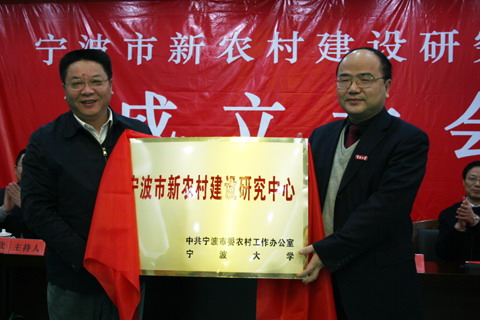 联合发文的“宁波市新农村建设研究中心”成立文件;宁波市副市长陈炳水为研究中心授牌,sm调教