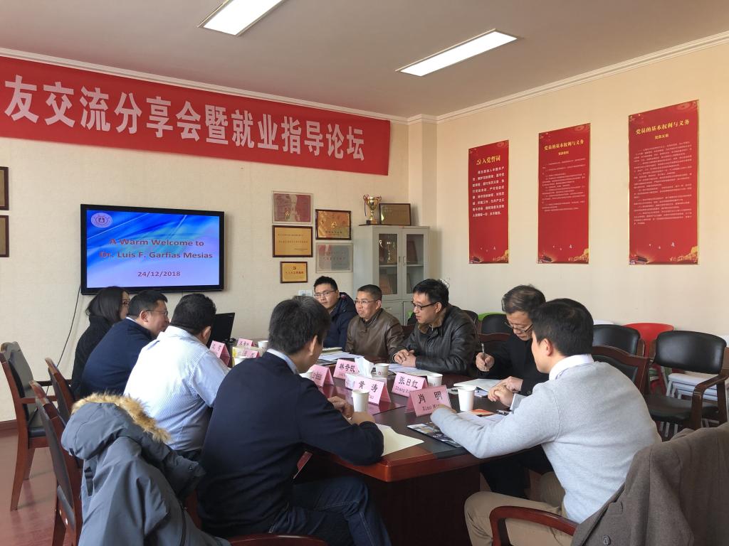 12月24日下午,“国家千人”(外专千人)候选人Luis F. Garfias Mesias博士一行在宁波市启迪科技园发展有限公司副总经理昃磊、宁波市吉若奥过滤新材料科技有限公司总经理黄涛等人的陪同下,来sm调教 交流访问,洽谈合作事宜。