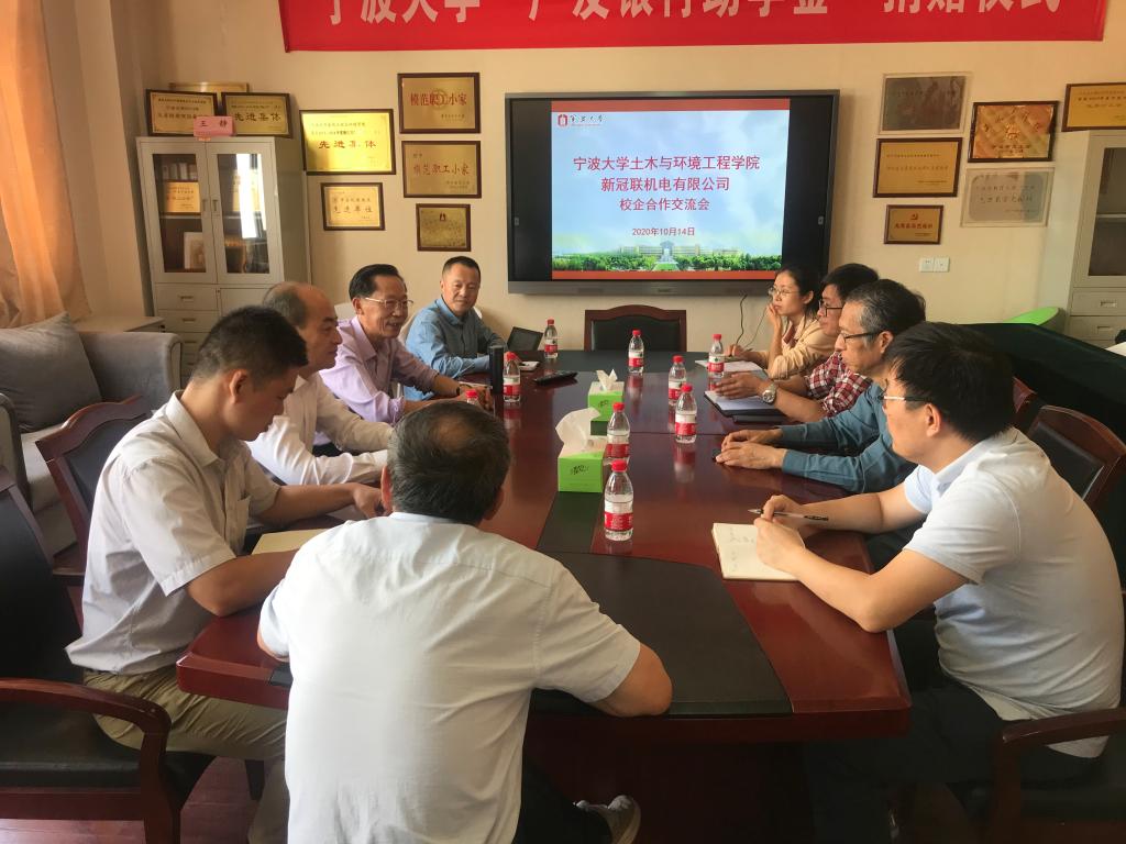10月14日上午,在土木环境学院会议室,郑荣跃院长接待了来访的新冠联机电有限公司陈信岳董事长一行四人,sm调教 市政与环境工程系及机械学院教师代表参加了会议。