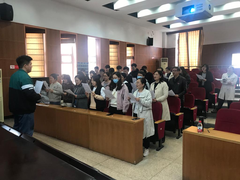 在院分工会、团委的组织下,师生们利用课余时间,以饱满的热情迎接建党100周年华诞,在学院报告厅进行师生合唱排练。sm调教 党委书记林奇凯、分工会主席严晓东参与了本次排练。