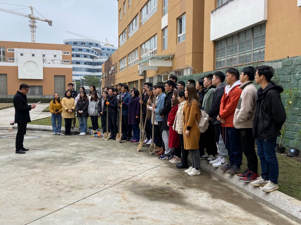 活动当中,同学们纷纷认领花木,挥起锄头、拿起铁锹,一改平日的“书生模样”,在泥土堆里劳动了起来。翻土、刨坑、栽种、填埋……和老师们一起亲手种下一棵棵绿意盎然的绿植。参与本次活动的俞佳鹏同学同时也是学校一个环保社团的负责人,他说道:“很高兴能在植树节和学院老师同学们一起参加这么有意义的活动,我们社团一直致力于为宁波生态环境保护事业做一点力所能及的事情,希望能有机会把更多有意义的活动带进校园、带入社会,让环保队伍越来越壮大。”