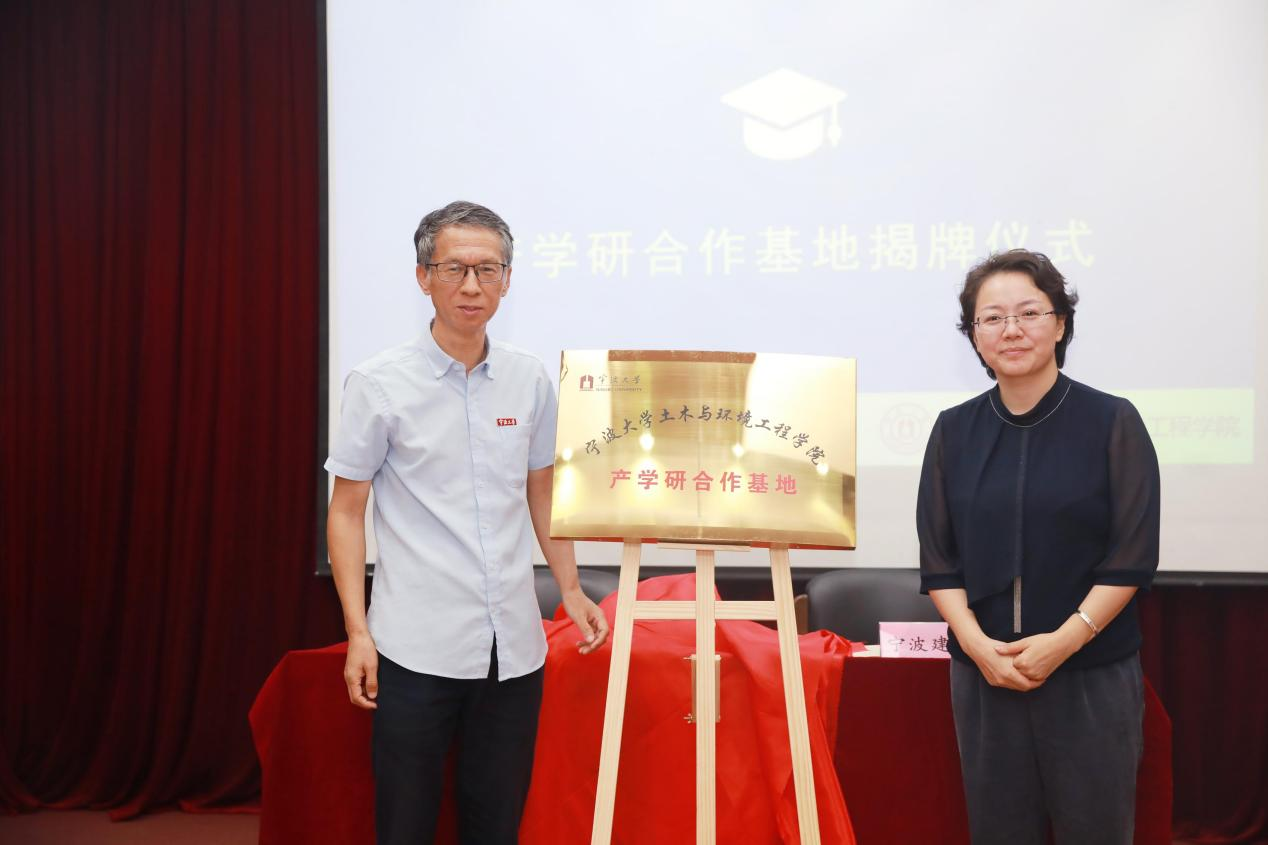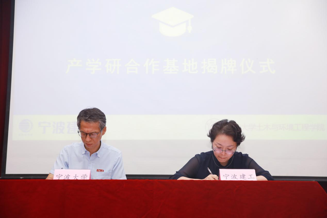 随后,sm调教 土木与环境工程学院与宁波建工工程集团有限公司就共建研发平台、人才培养等方面达成合作协议,sm调教 土木与环境工程学院院长郑荣跃和宁波建工工程集团有限公司董事长陈静代表双方进行了产学研合作签约并为“产学研合作基地”隆重揭幕。