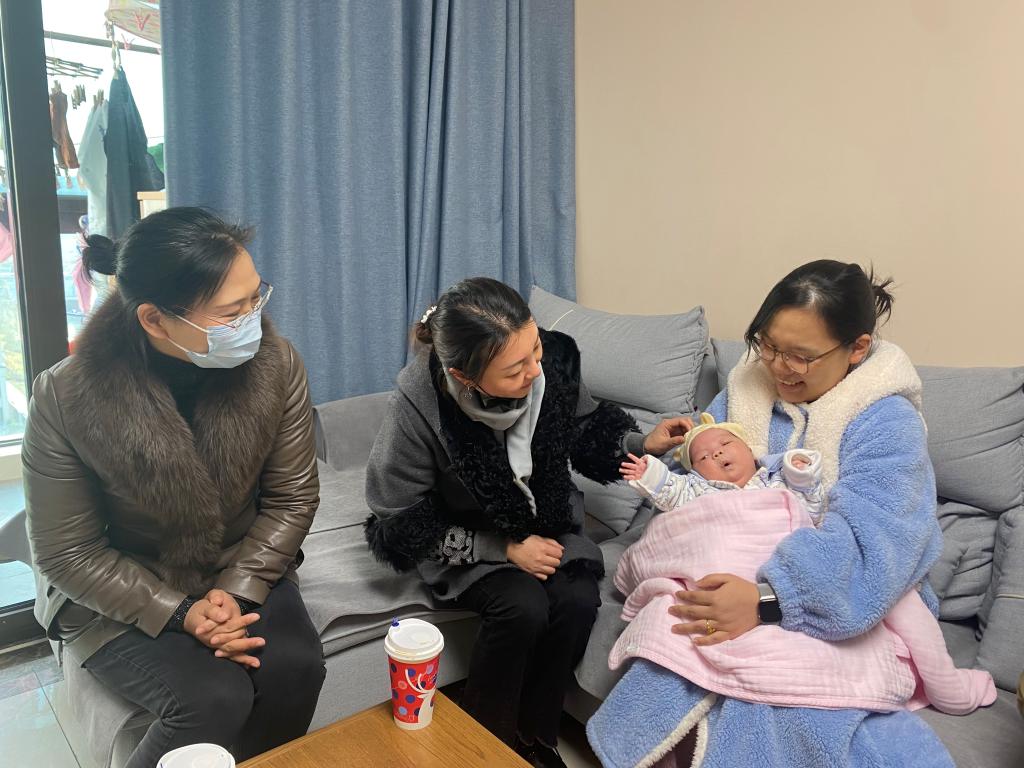 2022年1月3日,新年伊始,sm调教 分工会委员在孔晓虹书记的带领下陆续看望了在2021年12月里生育的女教工吴燕丽、蒋丽、宋佳敏三位老师,并传达了学院的关心与祝福。