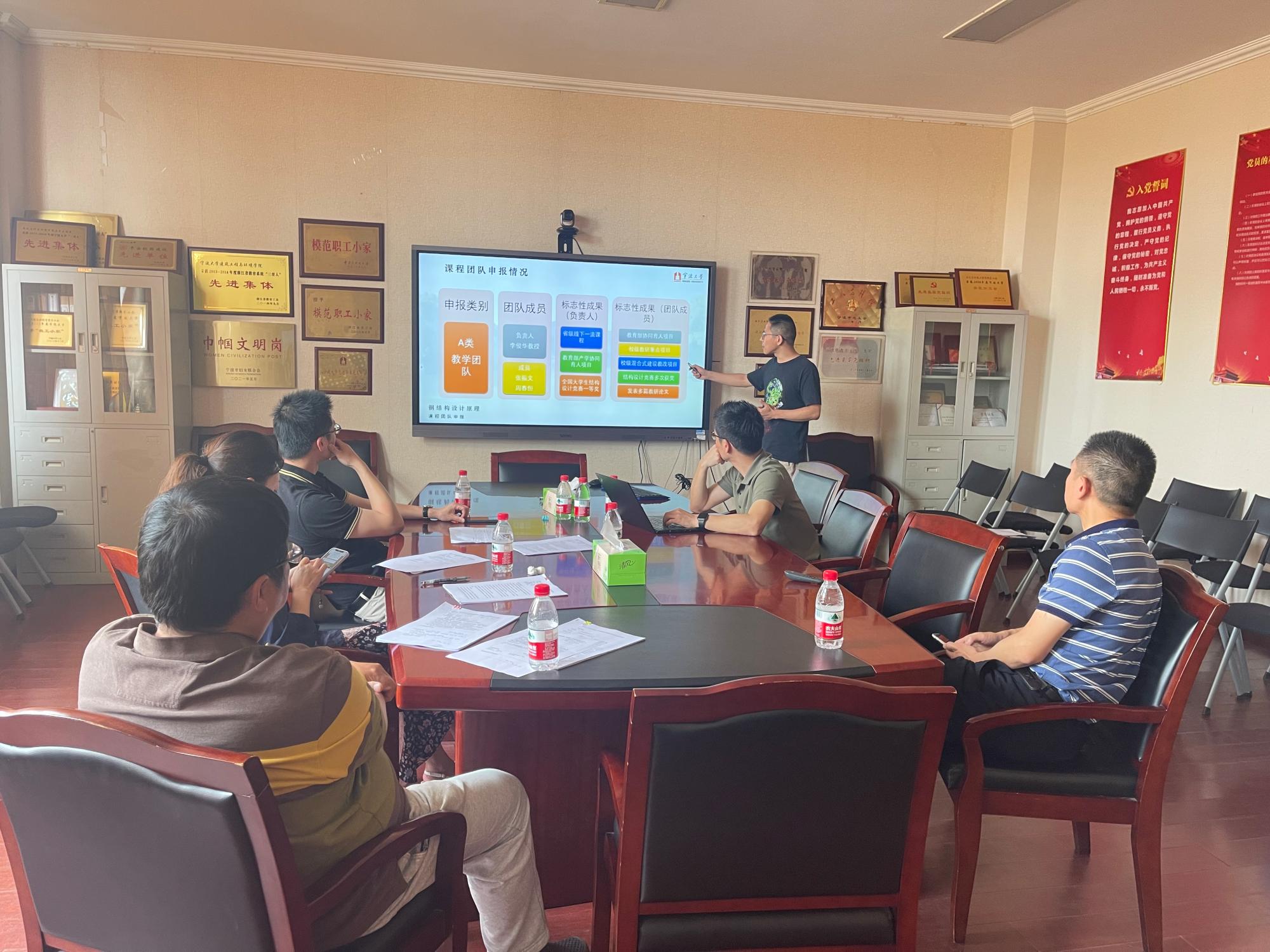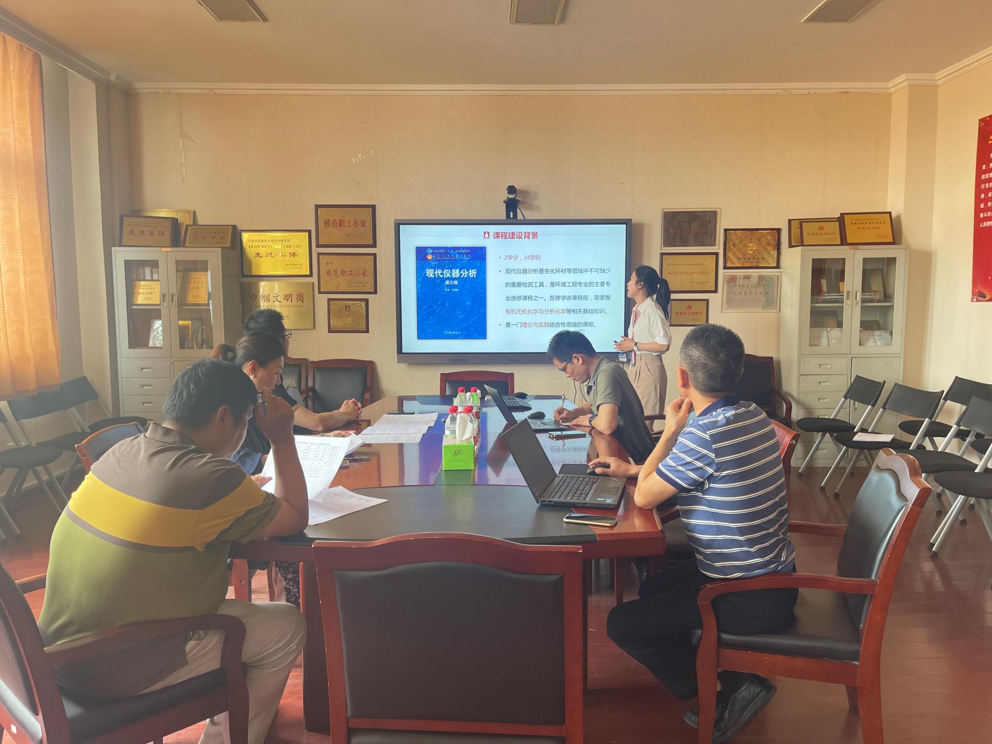 2022年6月21日下午,土木与环境工程学院2022年院级本科教学团队(课程组)及示范实践基地建设答辩评审会顺利开展,学院党委书记孔晓虹、分管教学工作副院长章子华、环境系系主任余振勋、院级督导组长严蔚作为评审专家对各申报课程组及示范实践基地进行了评审。