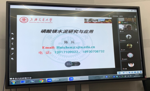 2022年11月2日,sm调教 建工论坛220讲暨土木工程学科论坛第6讲在海洋工程研究院会议室举行。上海交通大学船舶海洋与建筑工程学院教授、博士生导师陈兵应sm调教 邀请,为sm调教 师生作了题为“磷酸镁水泥研究与应用”的线上学术讲座。学院土木工程系相关专业教师、在校研究生和部分本科生在会议室线下集体参加,其他相关院校师生在线上聆听学习。