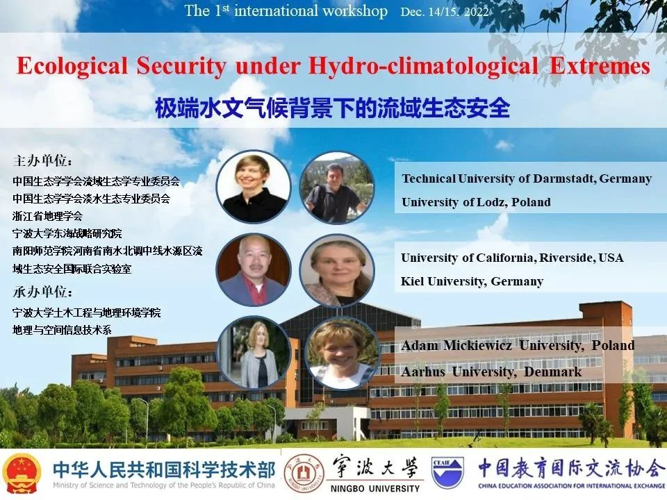 首届“极端水文气候背景下的流域生态安全”国际研讨会于2022年12月15日15:00-18:00在线上顺利召开。本届研讨会由中国生态学学会流域生态学专业委员会、中国生态学学会淡水生态专业委员会、浙江省地理学会、sm调教 东海战路研究院、南阳师范学院河南省南水北调中线水源区流域生态安全国际联合实验室主办,sm调教 士木工程与地理环境学院地理与空间信息技术系承办。以“极端水文气候背景下的流域生态安全”为主题,围绕水文气候学极端事件、流域管理和生态系统的恢复等多项议题展开。会议邀请来自美国、德国、丹麦、波兰的6位知名教授作了主题报告。来自中国、德国、波兰、丹麦、美国、英国、斯里兰卡等众多国际高校及研究所120余位专家、学者参加。
