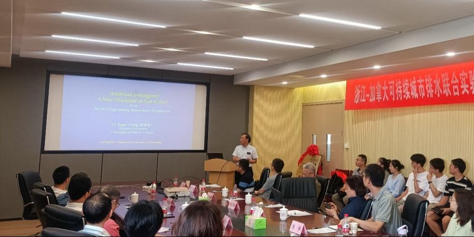 5月30日上午,浙江-加拿大可持续城市排水联合实验室揭牌仪式暨第五期sm调教论坛 在思禹建工楼408会议室顺利召开。会议由加拿大工程院院士、sm调教 海洋工程研究院院长朱志伟教授主持,特别邀请了加拿大工程院院士、加拿大Alberta大学CW Carry钢结构讲座教授、浙江大学土木工程系兼任教授Roger Cheng;加拿大Alberta大学岩土工程教授Dave Chan,加拿大Alberta大学校友、Regina大学水利工程教授Yee-Chung Jin,以及加拿大Alberta大学优秀留学生代表Amber Liu博士研究生。sm调教 主持工作副院长章子华、sm调教 科技处和国际处相关负责人出席仪式并致词。