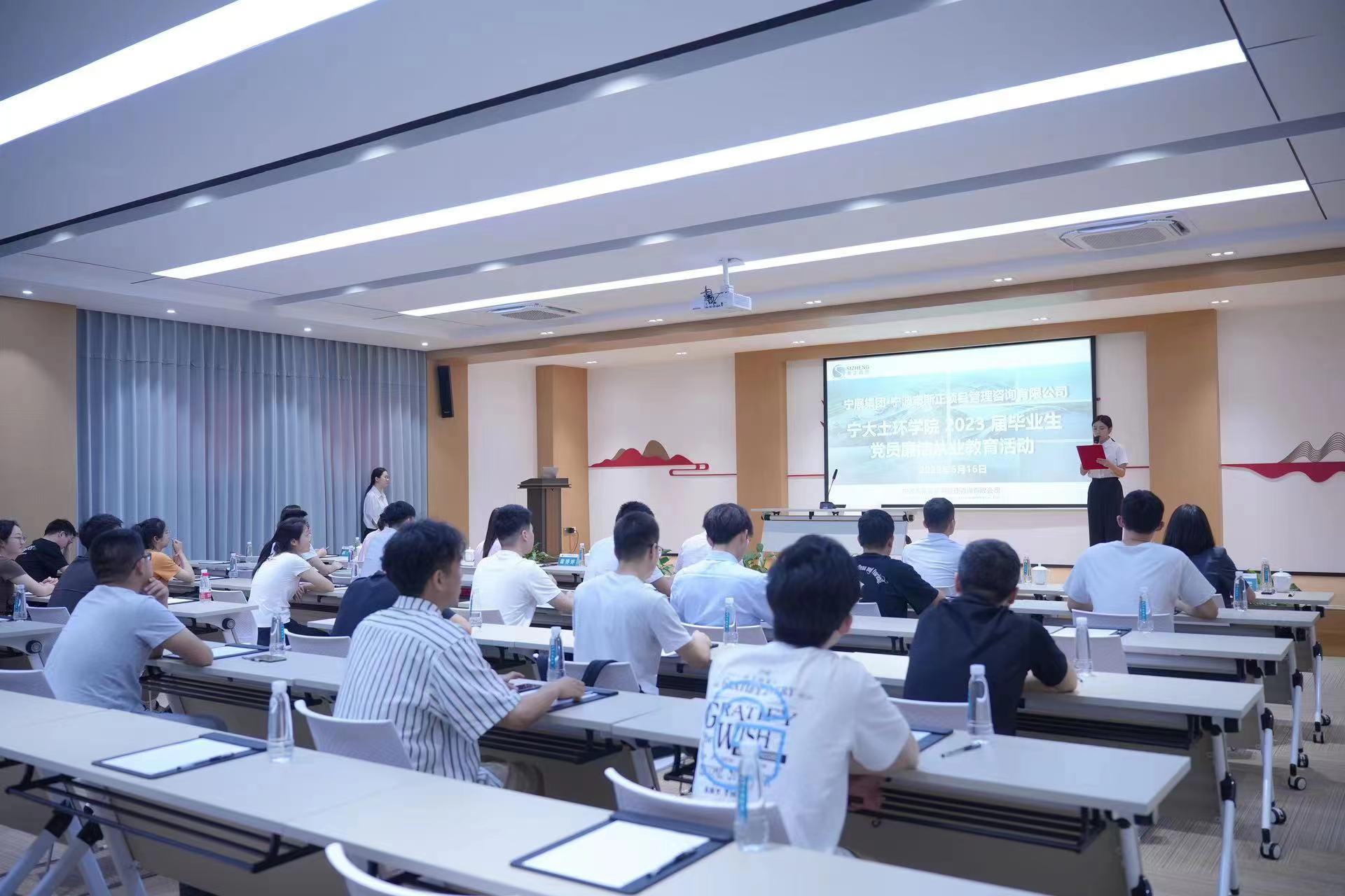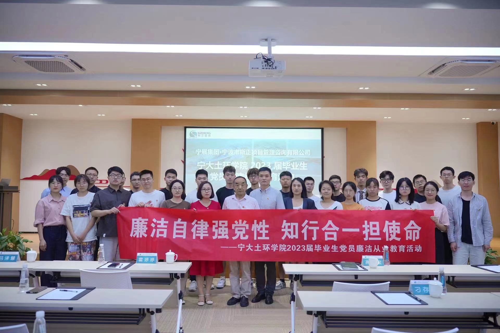 6月16日,sm调教 党委、纪委组织土木系、环境系30余名2023届毕业生党员代表、教师党员代表赴宁波市斯正项目管理咨询有限公司、奉化污水处理厂,开展“廉洁自律强党性,知行合一担使命”主题教育暨廉洁从业教育活动。