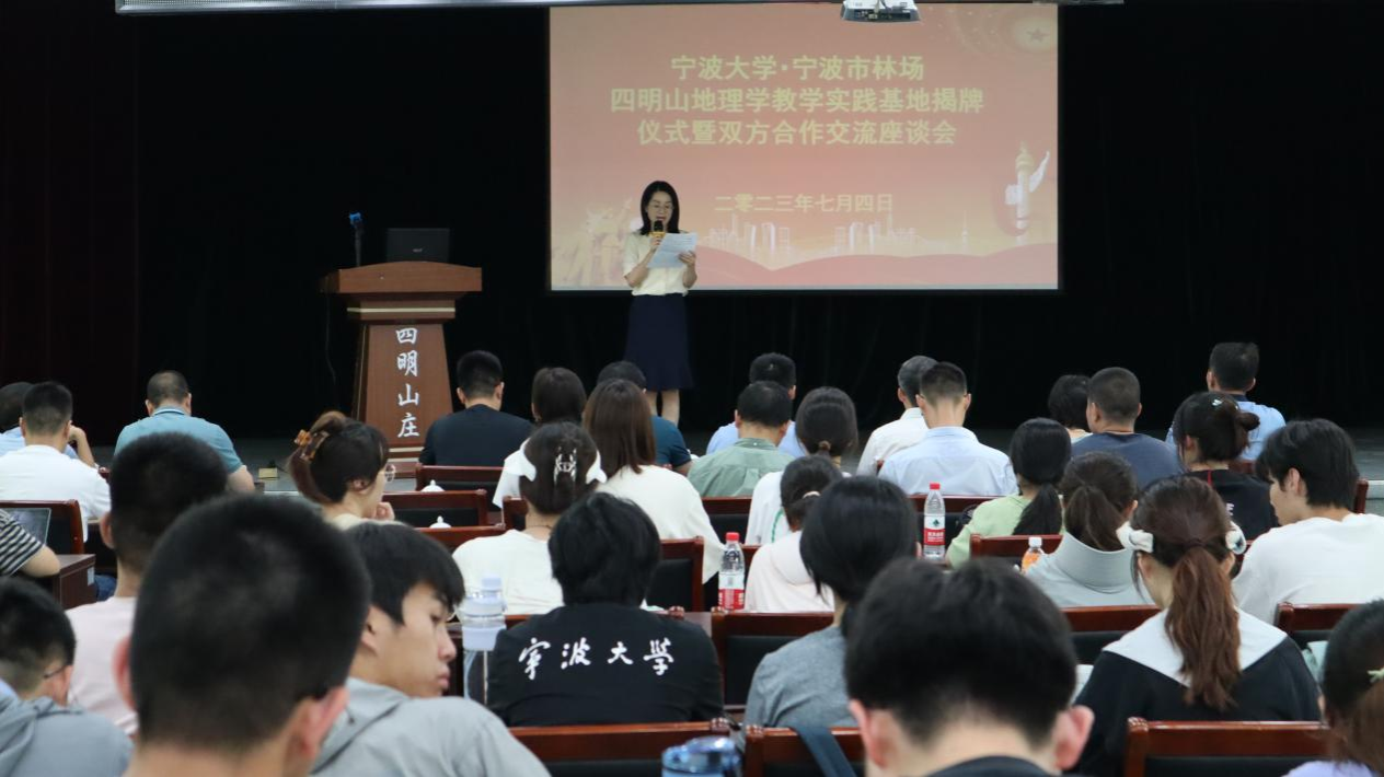 2023年7月4日下午,“sm调教 -宁波市林场四明山地理学教学实践基地”揭牌仪式暨双方合作交流座谈会在宁波市林场会议中心举行。宁波市自然资源和规划局、宁波市林场、sm调教 发展规划处、sm调教 相关领导为仪式共同揭牌。宁波市林场班子成员,sm调教 师生共110余人参与。