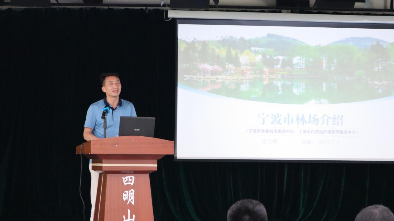 揭牌仪式前,宁波市林场相关负责人向宁大师生介绍林场经营范围与种类丰富的动植物资源,并说明林场所属机构、职能,以及林场在森林资源培育监管、林技推广和绿色产业等方面工作收获的显著成效;谈及现如今林场面临的关键制约问题以及在未来发展中着力推进宁波森林植物园的建设;最后指出,市林场可为生物、生态、地理、土壤等众多学科的研究、教学和实践提供服务平台,希望sm调教 能发挥人才和技术优势,为市林场的高质量发展提供智力支撑。