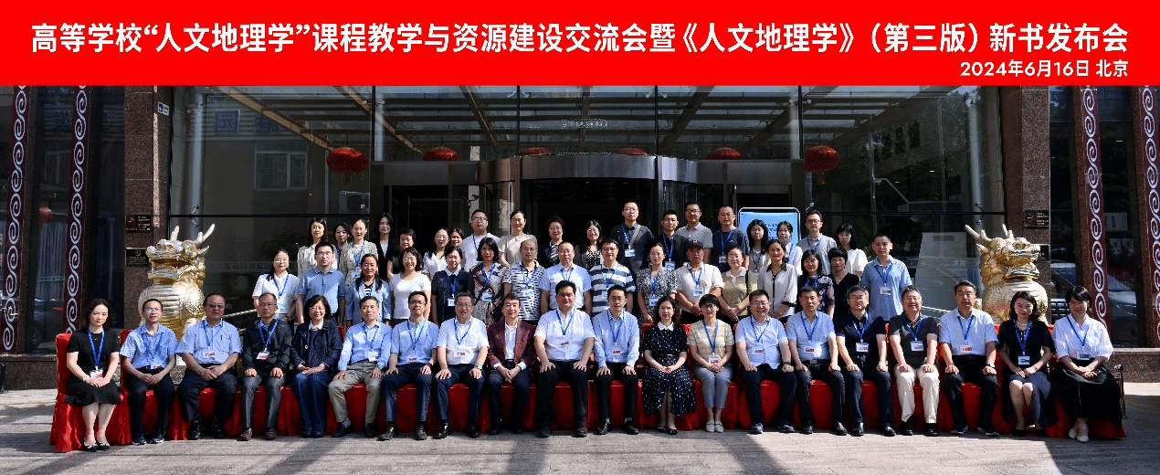 2024年6月15日至16日,高等学校“人文地理学”课程教学与资源建设交流会暨《人文地理学》(第三版)新书发布会在北京举行。本次会议由北京师范大学地理科学学部主办,高等教育出版社协办,全国近100名从事人文地理类教学与科研的师生共同参与。