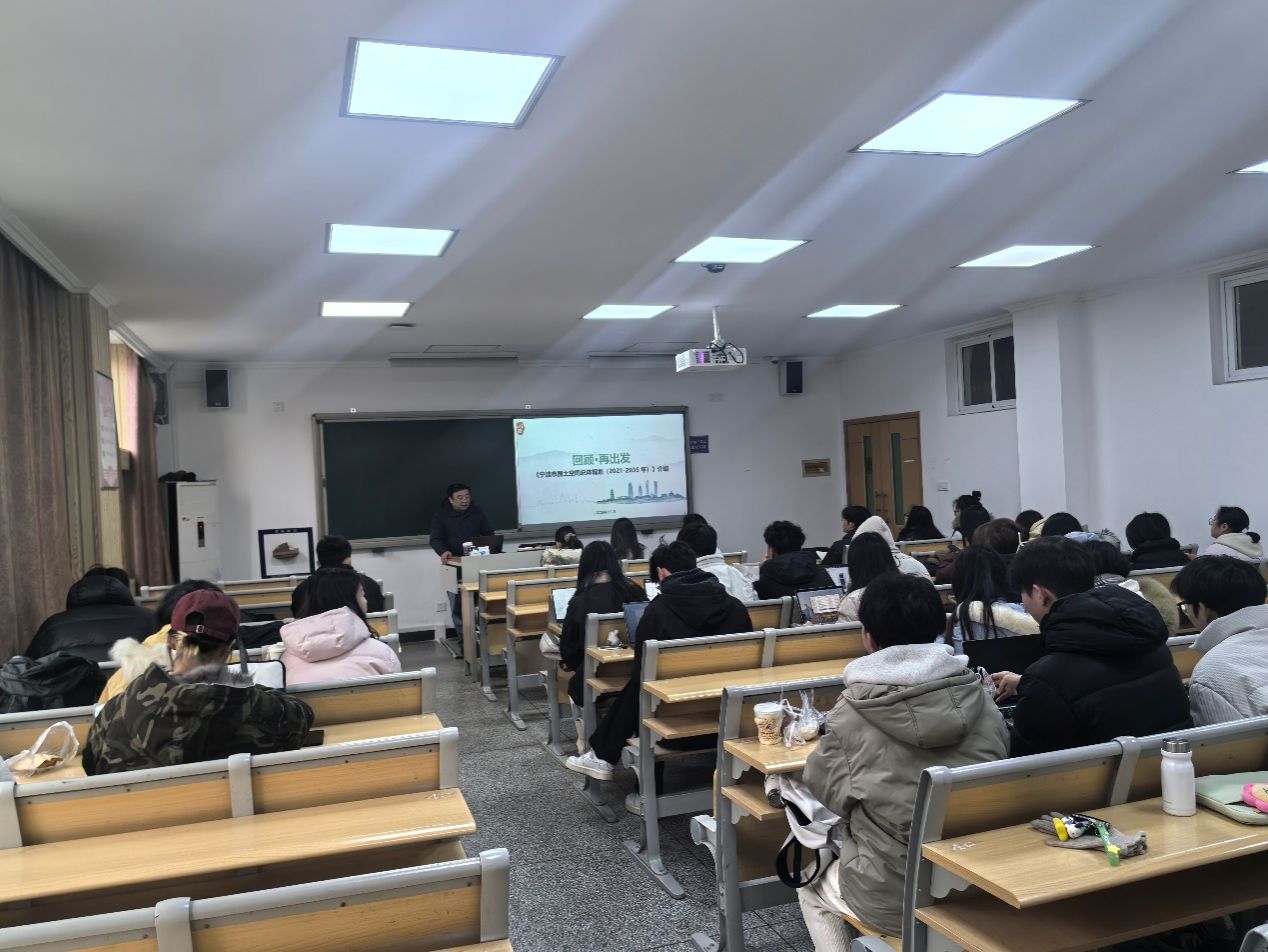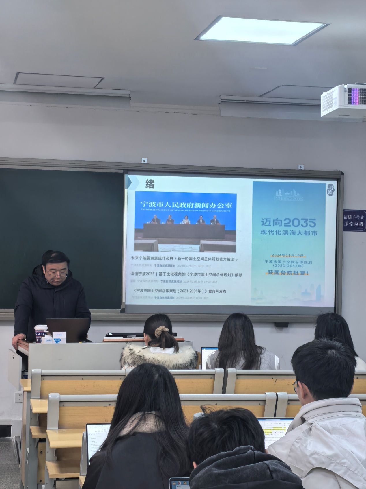 2024年12月23日上午,应sm调教 地理与空间信息技术系副教授冯秀丽老师邀请,宁波市自然资源和规划研究中心自然资源资产研究所所长、sm调教 兼职硕士生导师章仲楚应邀为sm调教 2024级农村发展专业硕士《农村土地规划与利用》课程讲授 “宁波市国土空间总体规划(2021-2035年)”的专题讲座。