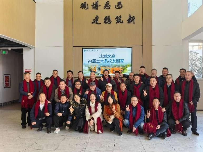 毕业30年后重回母校,三十余位94届土木系校友无比欣喜。在校园里,他们边走边聊,共同回忆青春岁月,畅谈过往与未来。在熟悉的思禹建工楼里,他们纷纷拍照留念,记录下珍贵的欢聚瞬间。