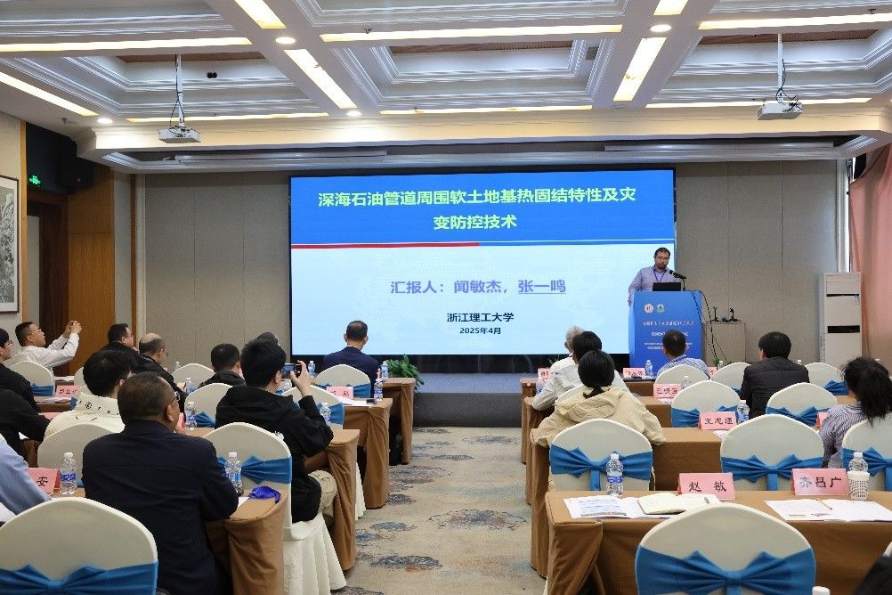 浙江理工大学张一鸣教授作了题为《海底油气管道地基多物理场耦合理论与灾变防控技术》的报告。针对深海油气管道软土地基的热固结问题,通过系统研究揭示了循环温度荷载下管周土体孔压演化规律,构建了层状地基的广义非完全热接触模型,修正了传统模型对热效应的高估。团队自主研发的高精度接触热阻测定系统为界面热传导研究提供了关键技术支撑。成果在界面热阻控制、动力响应预测及保温层失效防控方面具有重要应用价值,为我国深海油气资源开发与能源安全提供了理论保障。