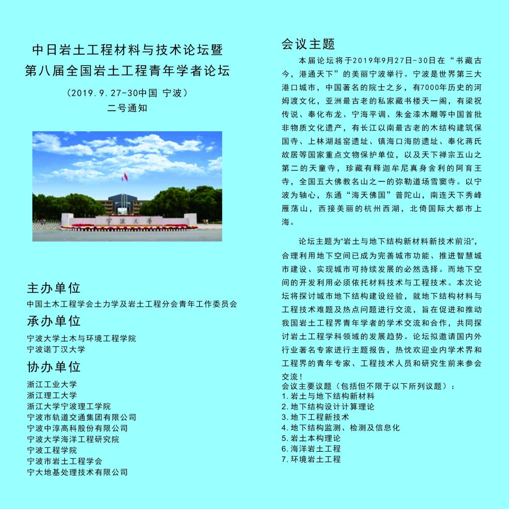 关于召开中日岩土工程材料与技术论坛暨第八届全国岩土工程青年学者论坛的通知