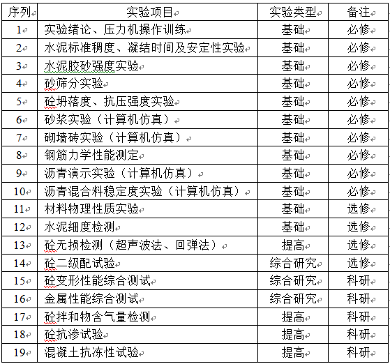本实验室是为配合专业基础课《建筑材料》课程教学而设置,主要面向土木、工管、建筑、环境工程等专业,目的是使学生通过建材实验的实践操作,熟悉主要建筑材料的技术要求,并具有对常用建筑材料独立进行质量检定能力;使学生对具体材料性状有进一步了解,培养学生严谨认真的科学态度,提高分析问题和解决问题的能力。