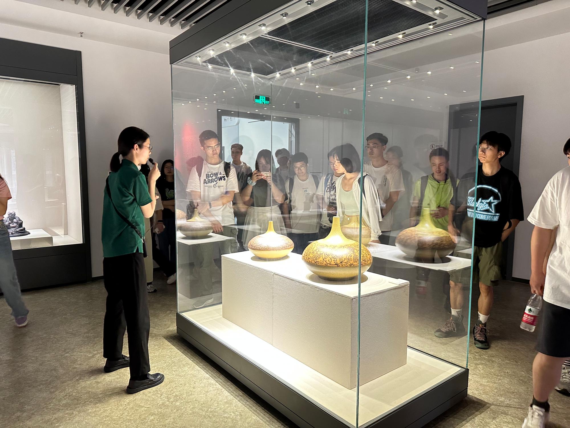 第二站,同学们来到了上林湖青瓷文化传承园,通过观赏一件件现代青瓷作品,同学们感受到了青瓷在历史更替中的传承与创新。同学们还近距离参观了龙窑,学员代表不禁感叹道:“青瓷需要经受熊熊炉火的高温锻造才能完成从寻常的泥土到温润如玉的青瓷的脱胎换骨,我们也要像青瓷一样,经得起千锤百炼,不惧风吹雨打。”