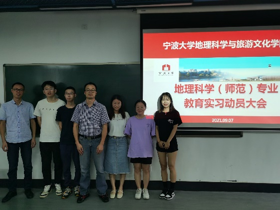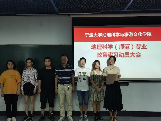 会议由李加林教授主持,李老师为18级地理师范专业的同学和带队指导老师介绍了本次教育实习的主要任务,主要由教学任务、班级管理任务和教研任务三部分组成。并强调了本次教育实习的纪律:听从实习学校的安排,按时到校,衣着整洁,符合实习教师的要求等。18级地理师范同学纷纷表示严格按照要求,完成本次教育实习的任务。会后18级地理师范学生与各位带队指导老师留下了合影。