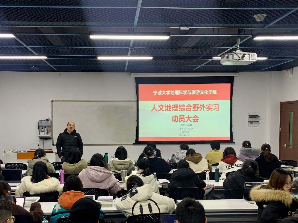 19级地理科学(师范)专业全体学生在植物园教学楼203教室召开人文地理综合野外实习动员大会,本次会议由课程负责人马仁锋教授主持。