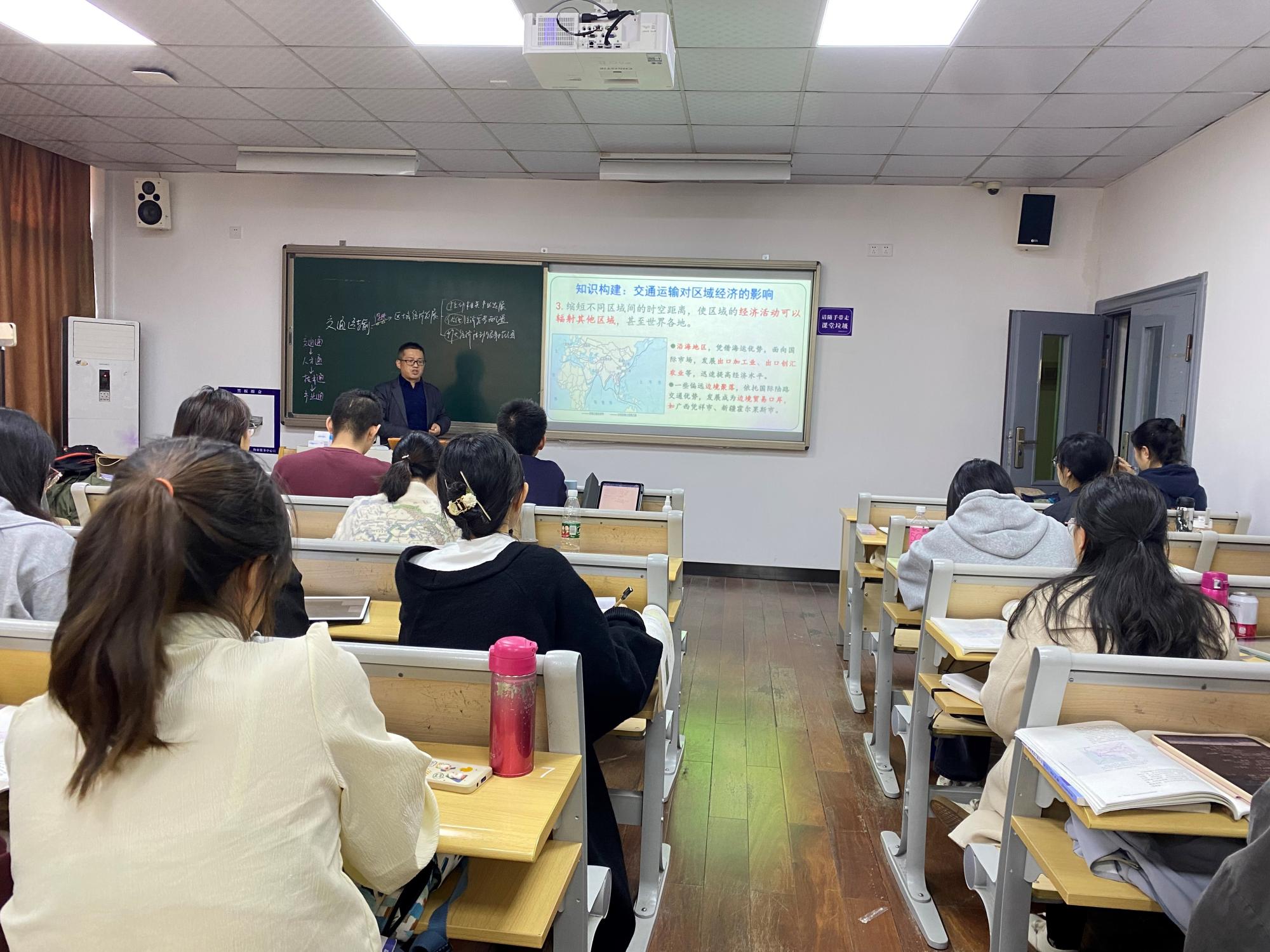 2022年11月5日,高中地理示范课观摩活动在8号教学楼404教室顺利开展,本次活动主题是“高中地理必修课教学展示活动及教学设计探讨——以交通对区域发展影响为例”。观摩本次活动的同学有2020级地理科学(师范)全体本科生、2022级学科教学(地理)全体研究生以及其他年级的部分地理科学(师范)本科生、学科教学(地理)研究生、地理学研究生。