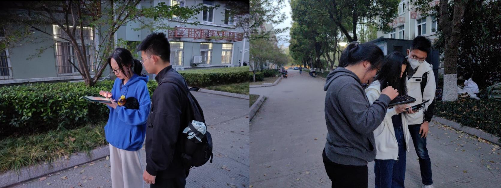 地理与空间信息技术系主任马仁锋老师组织同学们分组选题,进行宁大校园空间及其文化营造的相关调查研究。