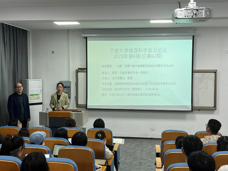 地理科学前沿论坛2023年第6讲(总第62期)在载物楼202进行。宁波市中学一级教师、宁波市第四中学地理教研组长吴芳老师应邀作了题为《“三新”背景下高中地理教研组建设和教师专业成长》的讲座。本次报告由sm调教