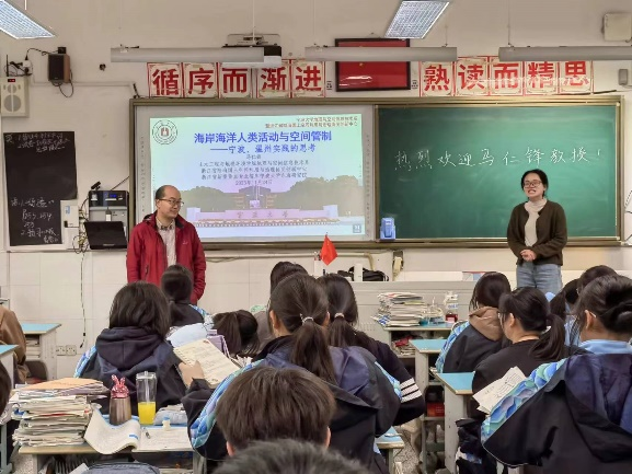 地理科学(师范)专业教授进宁波市第三中学开讲《海岸海洋人类活动与空间管制》并看望教育实习学生