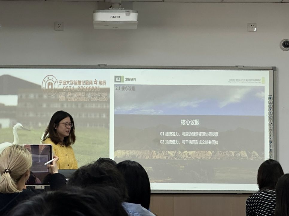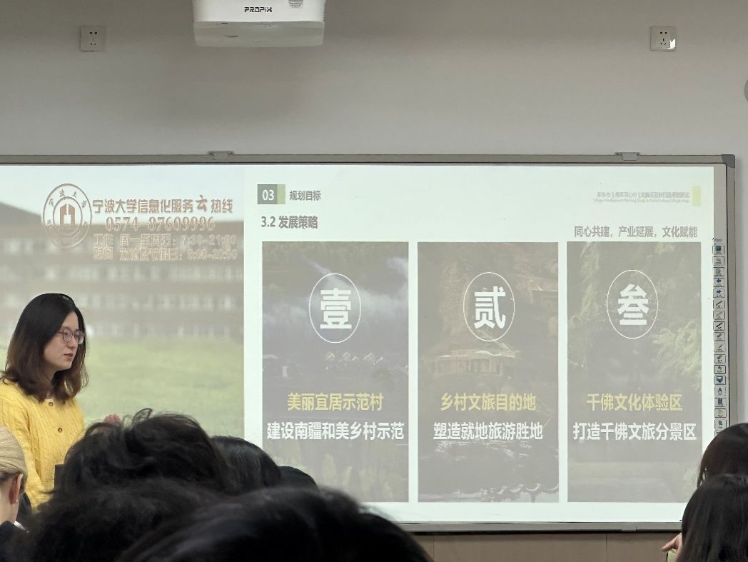 在规划目标与发展策略部分,牛梦云规划师提出了三点具体建议:一是建设美丽宜居示范村,打造南疆和美乡村示范;二是塑造乡村文旅目的地,推动就地旅游胜地的形成;三是打造干佛文化体验区,建设干佛文旅分景区。她通过详实的数据和生动的案例,为学生们展示了甬库同心村未来发展的蓝图。