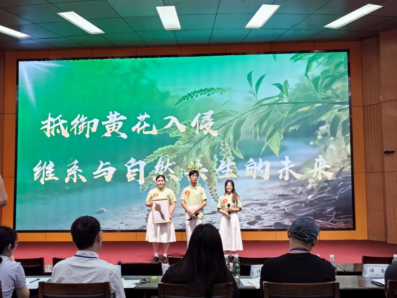黄迹寻踪队(参赛成员:胡嘉琪、陈晓蓉、王博涵、管洁祎、费蕴清)作品《宁波港周边地区加拿大一枝黄花的入侵现状及驱动机制》立足宁波港,以最广泛入侵物种加拿大一枝黄花作为研究对象,运用卫星遥感和无人机测绘技术辨析地面景观类型,利用群落学方法收集样方数据,获悉加拿大一枝黄花的入侵现状;主成分分析、多元线性和广义线性模型量化量化入侵现状,解析入侵机制;构建最大熵模型预测未来气候情景下加拿大一枝黄花的入侵趋势,旨在为生态安全和环境福祉贡献力量。