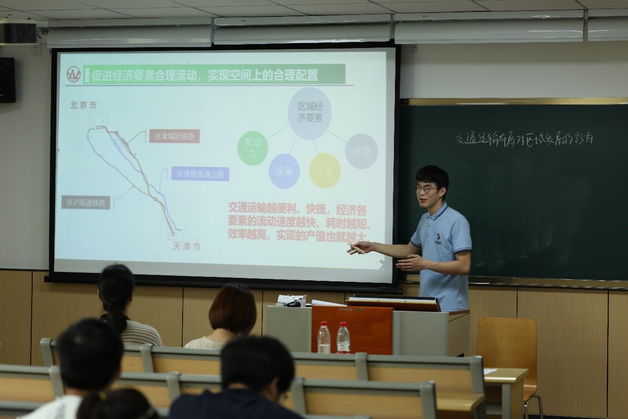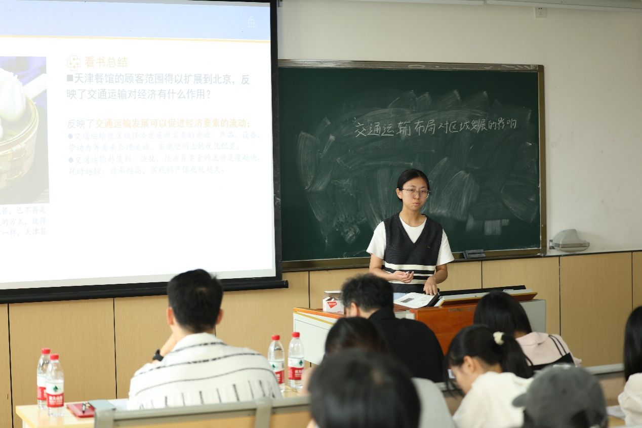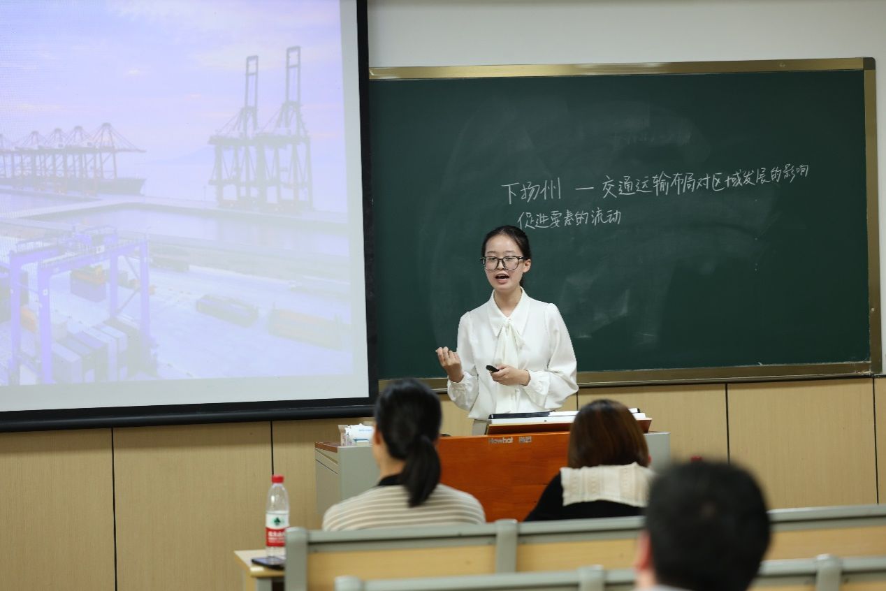 杨磊老师首先从板图绘制与板书逻辑角度评析了11位参赛选手的讲课表现;此外,就提问的有效性角度,强调了师生互动时对答案的预设准备与对学生回答的巧妙应对的重要性;吴巧红老师分析了情境设置与导入安排在课程设计中的亮点;来自初中的龚瑾老师以初中学情分享了“如何将地理讲得有趣”的方式,以及为抽象术语给予具象表达的意义,为参赛同学新的授课视角。