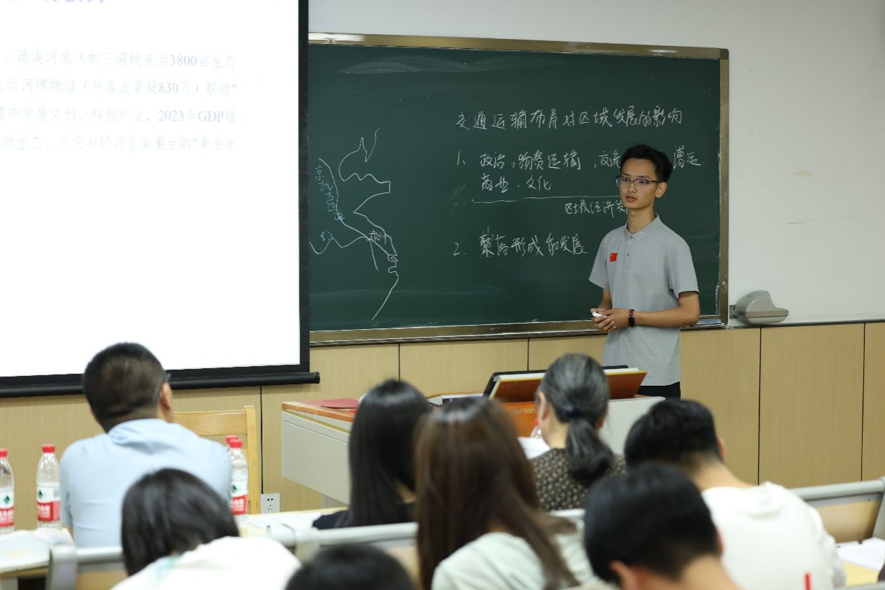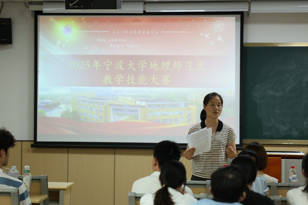 6月7日下午,2025年地理师范教学技能竞赛在本部教学楼六号楼紧锣密鼓地举行,经过预选赛评审选拔出的33名地理师范本科生与7名研究生分为四组同时展开竞赛。学院执行院长、地理科学(师范)专业负责人李加林介绍了来自宁波市中学地理教师发展学校联盟的9位一线专家,并期待参赛选手赛出风格、赛出水平。