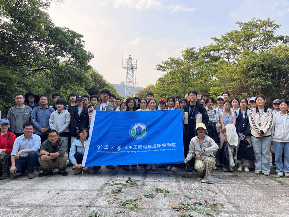2025年5月24日上午,2023级地理科学(师范)在高梅香、杨晓东、罗旭、许洺山、夏然等老师及地理学研究生的带领下,前往宁波天童国家森林公园开展为期一日的《土壤与生态》课程野外实习。同学们在老师的引导下开展了分层采集土壤剖面、采集土壤分析样品、调查植物群落和制作植物标本等活动。在实习中,同学们将课内知识转化为立体知识,将天童山装进背包,诠释了宁大地理人致知于行的探索精神。