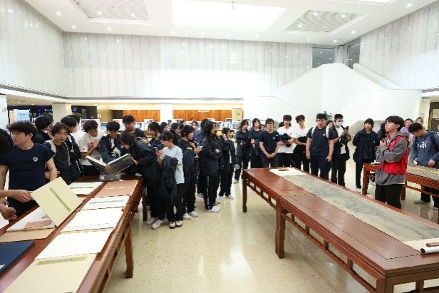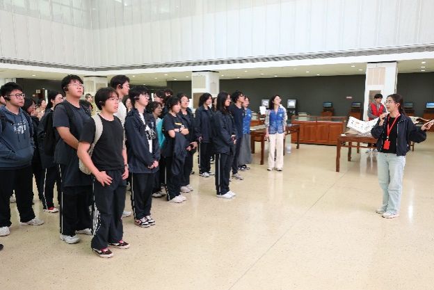 随后,同学们来到真诚图书馆,在讲解员的带领下参观了展品区、藏书区和自习区。馆内丰富的藏书、完善的设备令学生们赞叹不已。校园参观环节中,大家依次打卡南天门、包氏教学楼群、大草坪等地标,并在北门大踏步前合影留念,记录青春与学术交融的瞬间。