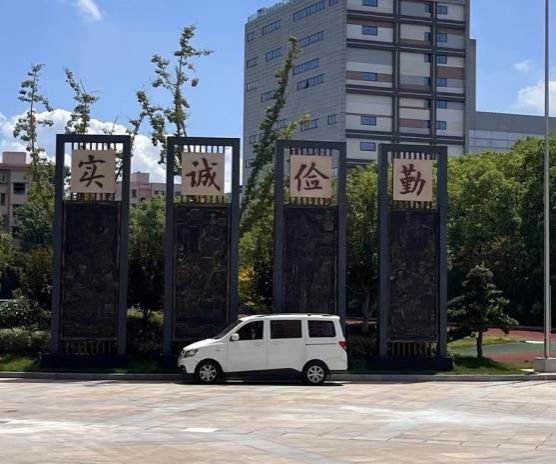 我们在综合楼前看到了李惠利中学的四字校训“勤”“俭”“诚”“实”;接着,我们路过了教学楼,看到了与教学楼一样高的油麻藤;在综合楼的阶梯上和小剧场旁,我们看到了李惠利中学独具特色的劳动实践项目——“一米农场”和“惠利小农场”,老师介绍到,这些“农场”是让学生自己种植萝卜、水稻等农作物,来体验劳动的艰辛与收获的喜悦,体现了“勤俭”的校训。在参观完校园之后,我们便乘坐大巴,返回了学校。