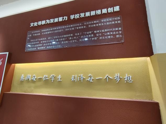 在听课环节结束之后,张宇老师先带着我们参观了综合楼的校史馆,了解到李惠利中学创办于1990年,是由香港实业家李惠利先生捐资助建的,是一所以“宁波帮”爱国人士命名的学校。建校30余年来,学校始终秉持着“惠润每一位学生,利泽每一个梦想”的文化理念,逐步发展成为浙江省一级重点中学。