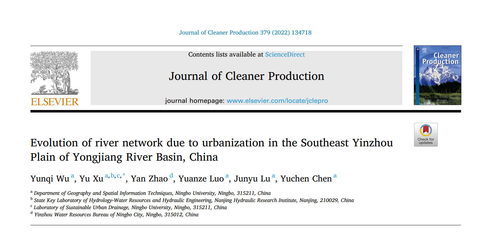 2020级地理科学(师范)专业本科生吴云琦以第一作者身份在《Journal of Cleaner Production》期刊(一区TOP,IF=11.072)发表了题为“Evolution of river network due to urbanization in the Southeast Yinzhou Plain of Yongjiang River Basin, China”的学术论文(论文链接//www.sciencedirect.com/science/article/pii/S0959652622042901?via%3Dihub)。通讯作者为sm调教